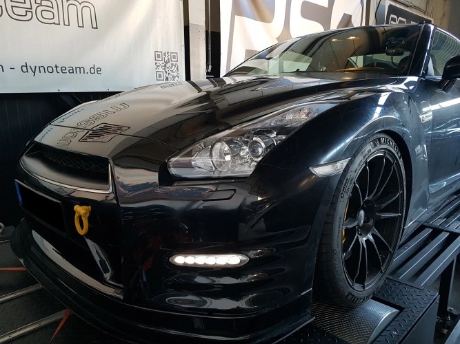 Bei diesem Nismo wurden Modifikationen im Bereich der Abgasanlage sowie Ansaugung/Spritversorgung durchgeführt, Kupplung war bereist modifiziert – ebenfalls ein Wagner Intercooler. Nachträglich auf unserem Prüfstand auf 102 Oktan abgestimmt mit Drehmomentbegrenzung. Ergebnis 720 PS und 845NM nach EWG. Für Events wurde die volle Leistung von 750PS und 900NM nach EWG auf 102 Oktan gefahren. Wir konnten bei rund 20 Grad Zeiten von 5,5 Sekunden von 100 auf 200 KM/H und 2,7 Sekunden von 0-100 KM/H mit der PB messen.